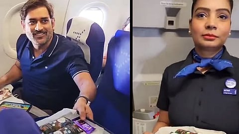 இந்நிலையில், தோனி தனது மனைவுயுடன் நேற்று இண்டிகோ விமானத்தில் பயணித்துள்ளார். அப்போது அவருக்கு விமானப்பணிப்பெண் சாக்லெட் கொடுத்துள்ளார். இதை வாங்கிக்கொண்ட தோனி அவருக்கு நன்றி தெரிவித்தார். இது தொடர்பான வீடியோ சமூகவலைதளத்தில் வைரலானது.